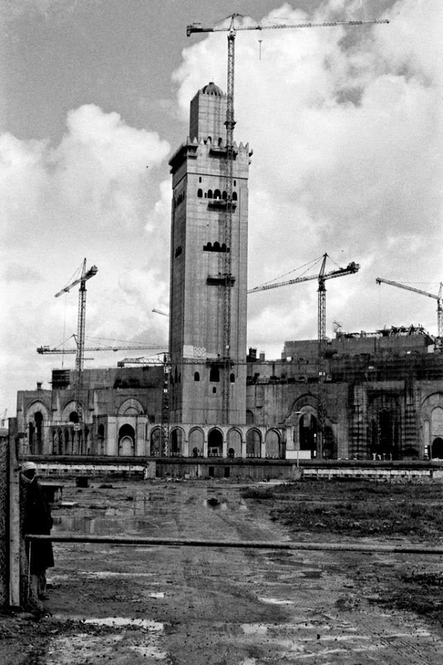 The Hassan II Mosque or Grande Mosquée Hassan II nickname: "Casablanca Hajj" (colloquial, microblogging and social networking language) is a mosque in Casablanca, Morocco. It is the largest mosque in Morocco and Africa and the 7th largest in the world. Its minaret is the world's tallest at 210 metres (689 ft).Completed in 1993, it was designed by Michel Pinseau and built by Bouygues. The minaret is 60 stories high topped by a laser, the light from which is directed towards Mecca.The mosque stands on a promontory looking out to the Atlantic Ocean, the sea bed being visible through the glass floor of the building's hall.[4] The walls are of hand-crafted marble and the roof is retractable. A maximum of 105,000 worshippers can gather together for prayer: 25,000 inside the mosque hall and another 80,000 on the mosque's outside grounds.
